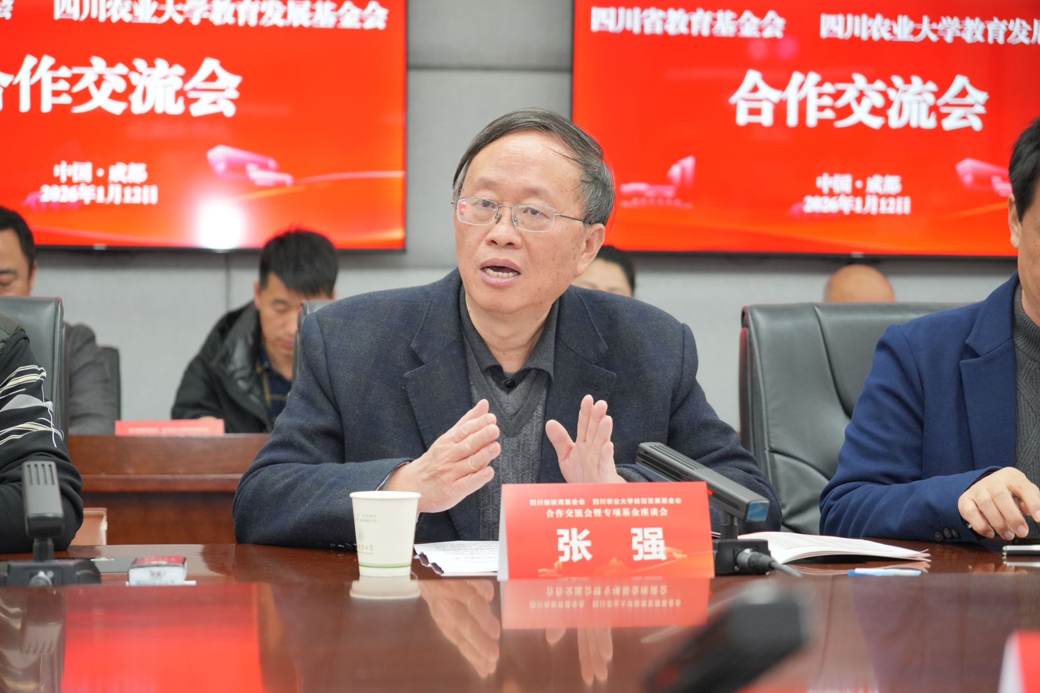 张强代表学校致辞。他指出,2026年是我校建校120周年,具有承前启后、继往开来的重要意义。学校始终坚持以立德树人为根本,以“强农兴农”为己任,积极拓展社会合作,创新育人机制。与四川省教育基金会达成战略合作,是我校在双甲子新征程中汇聚社会力量、深化教育公益协同的重要举措。他表示,学校将以建校120周年为契机,全力支持“2026教育公益协同发展大会”的筹备与举办,积极组建专项工作团队,广泛动员师生参与,努力将其打造成为凝聚共识、整合资源、引领方向的教育公益盛会。他希望双方以此次合作为起点,共同构建具有四川特色、全国影响力的教育公益协同平台,为服务国家战略和区域发展注入持续动能。